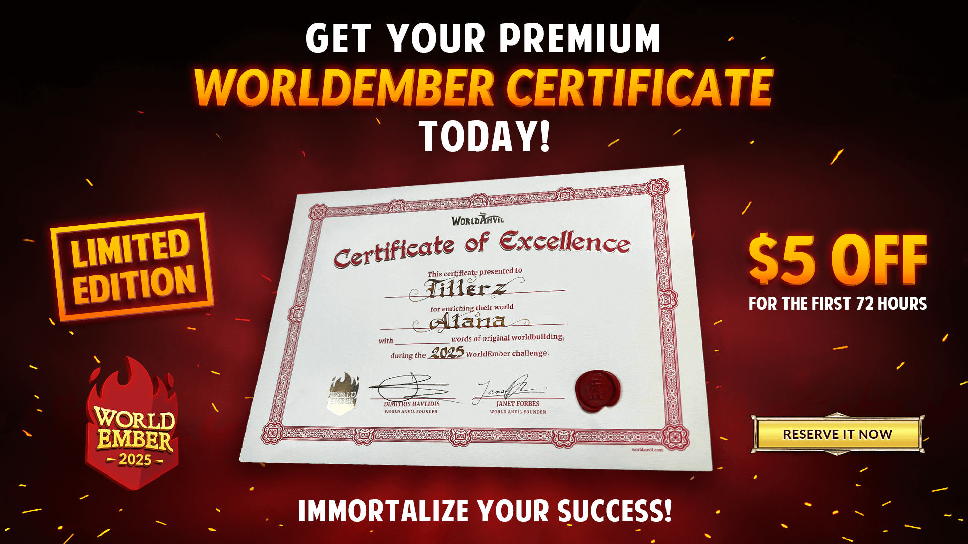 The winners will be announced at the WorldEmber 2025 Awards Ceremony stream, a special live-streamed Awards Ceremony on our Twitch on February 7th. If you can't tune in live, we'll release a page on the community category of the Learn section with the winners, as well as in our social channels (@WorldAnvil everywhere!). Stay tuned on our social media for updates!